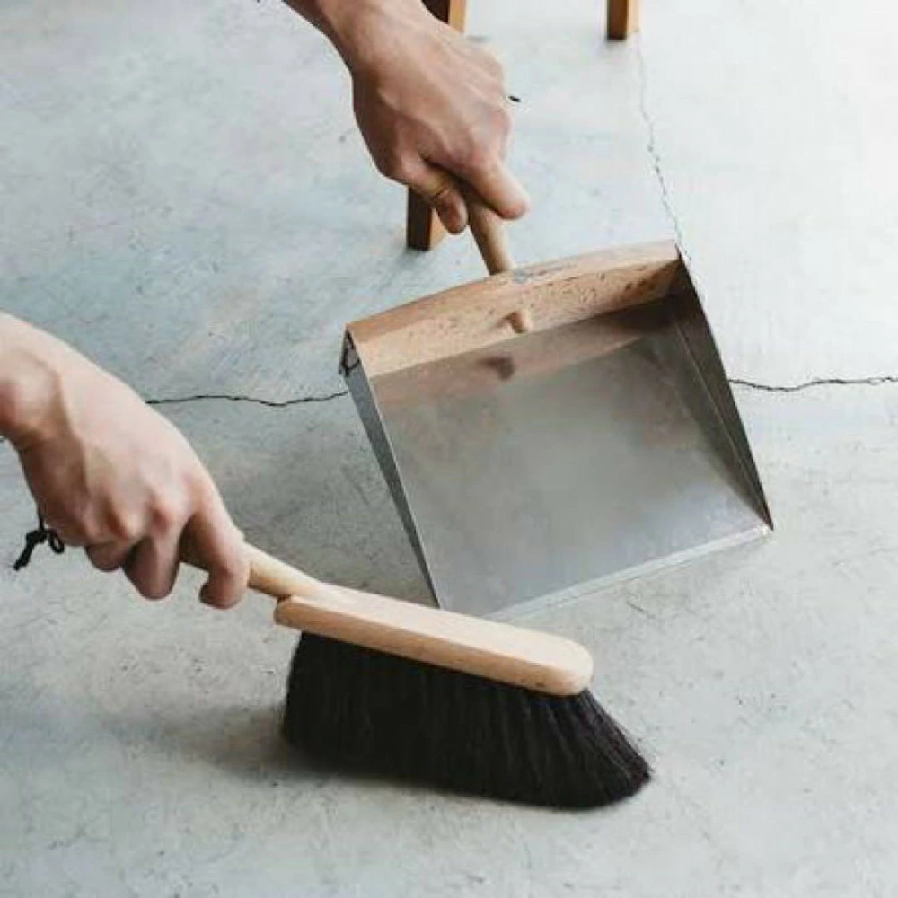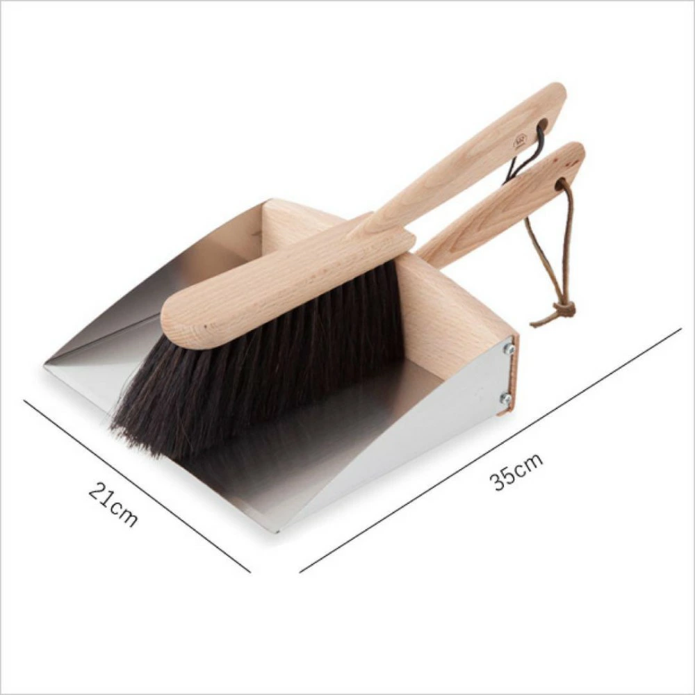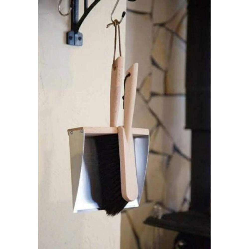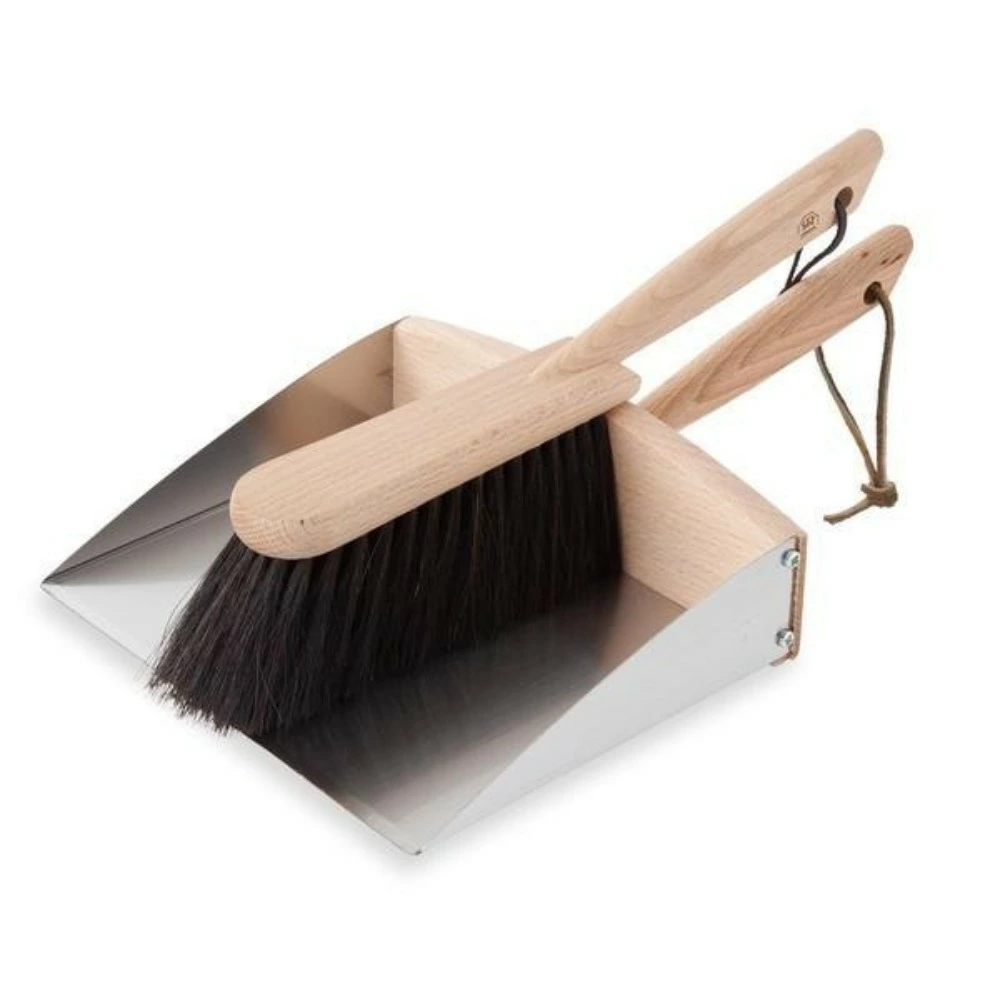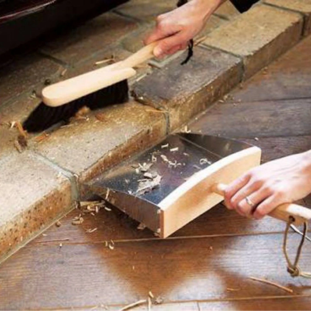 ステンレスとブナ材のコントラストが美しいナチュラルなちりとりと合わせて絵になるセット。