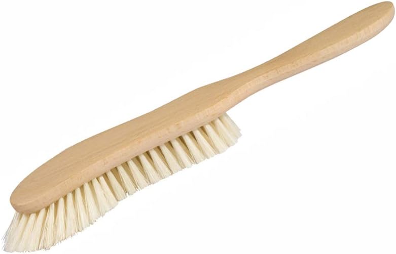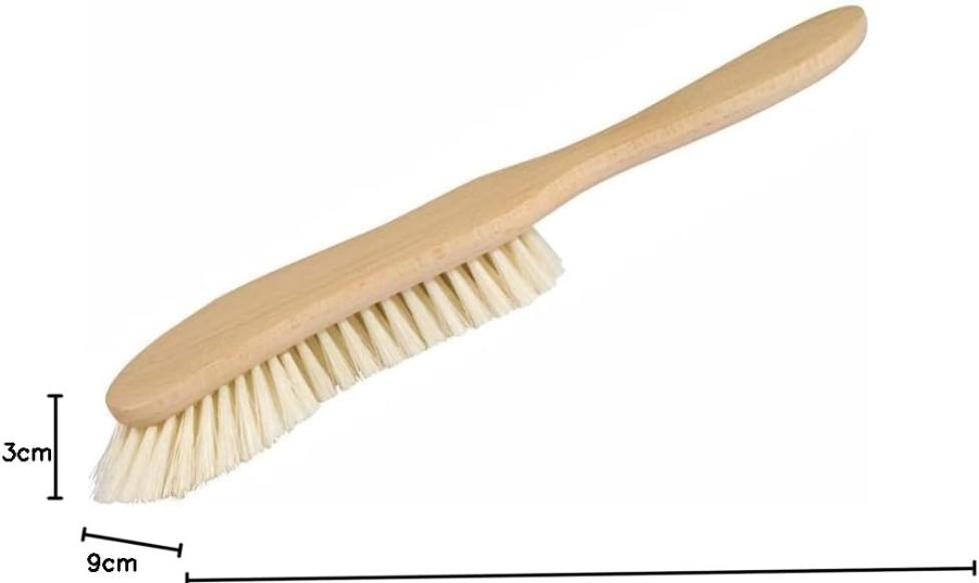・サイズ:全長:約30cm/幅:約9cm(ブラシ部分の一番広い部分)ブラシ毛(豚毛):前部が約3cm 後部が約2cmです。ボディ:ブナブラシ毛には白豚毛が使用されており、放射線状に傾斜させて植毛されている先端のブラシ毛がソファーの隙間、クッションカバーのファスナーの溝などに溜まった埃を掻き出します。コーナーなどのブラシ毛が届き難い場所でもお手入れしやすいように、柄は先端をラウンドさせた非対称の作りをしています。犬や猫などペットと一緒にお住まいのご家庭には特にオススメのブラシです。