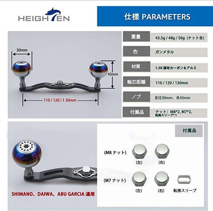 ・「サイズ」ハンドル軸心距離130mm/120mm/110mm、ノブ直径30mm 「総重」50g/48g/43.5g「素材」ハンドル - 1.5K炭素布のカーボン、ノブ - 70シリーズ航空アルミ。