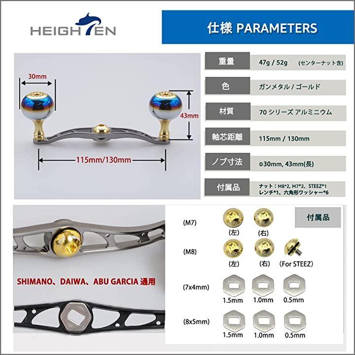 ・「サイズ」ハンドル軸心距離115mm/130mm、ノブ直径30mm 「総重」47g/52g(センターナット含)「素材」70シリーズ航空アルミ。