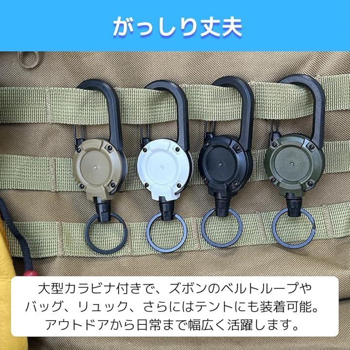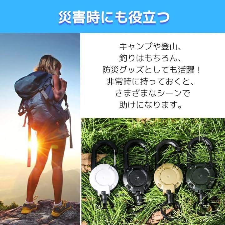 「がっしり丈夫」大型カラビナ付きで、ズボンのベルトループやバッグ、リュック、さらにはテントにも装着可能。