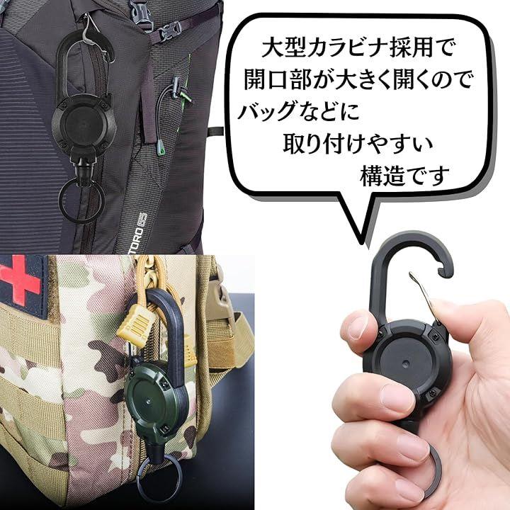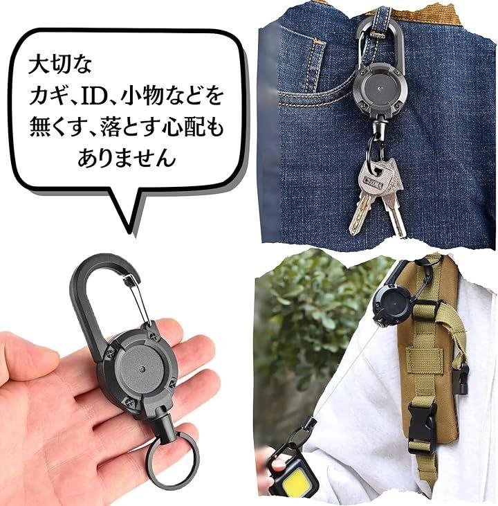 ズボンのベルトループやリュックサック、バッグなど様々に取り付け可能なリールキーホルダーです。