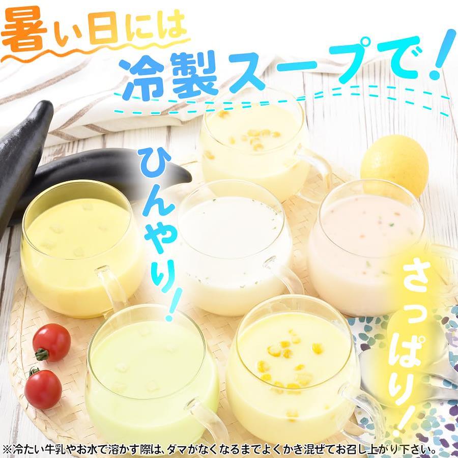 各外袋は保存に便利なチャック付き袋になっております。お湯を注ぐだけで簡単につくれるインスタントスープ(粉末スープ)です。