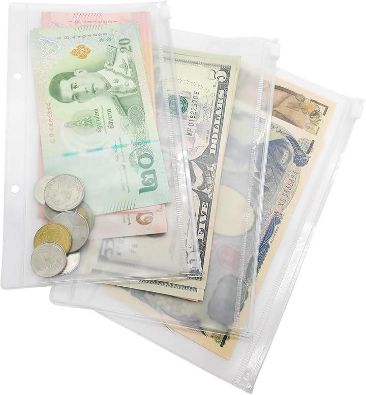 「 海外旅行の頼れるパートナーに 」現地の通貨、日本円などをクリアジップケースに仕分けておくと便利。