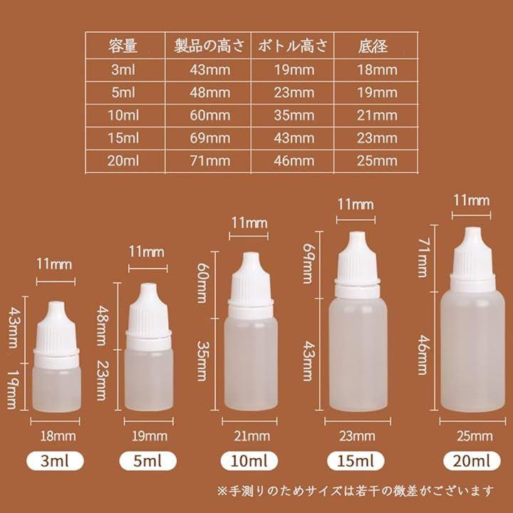 「商品内容」ドロッパーボトル:100個入 付属:漏斗 容量:20ml 高さ:7.1cm ボトル径:2.5cm 口径:1cm カラー:半透明x白 素材:PE *一時期誤って組み立て済みの商品が入荷されておりましたが、現在は組み立て前の正常な状態に戻っております。