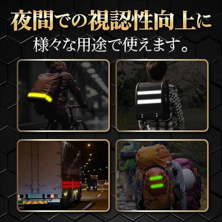 「蓄光反射テープ - 車用安全シール」 この蓄光反射テープは、車や自転車、オートバイに最適な安全シールです。