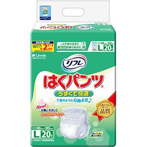 ■商品概要メーカー:リブドゥコーポレーション商品名:リフレ はくパンツ うすくて快適 Lサイズ(20枚入)区分:日用雑貨内容量:20枚入り商品概要:下着のようなはき心地の介護用おむつです。やわらか柔軟仕上げでお肌にやさしい。はいた時に股下がモコモコせずに動きやすい、すっきり薄型マットです。モレにくい横モレ防止ギャザーが足まわりにフィットし、尿をせき止めます。尿パッドを付ける位置も分かりやすいブルーのライン付き。足まわり・お腹まわりを締め付けないのにスキマができにくい!ゆったりソフトギャザーで上げ下げしやすい。消臭ポリマー配合、臭いにも安心!一人で歩ける方、介護があれば歩ける方におすすめです。JANコード:4904585035234商品コード:117802622