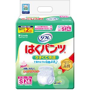 ■商品概要メーカー:リブドゥコーポレーション商品名:リフレ はくパンツ うすくて快適 Sサイズ(24枚入)区分:日用雑貨内容量:24枚入り商品概要:おしっこ約2回分吸収。ゆったりソフトギャザー採用でお肌にやさしくしっかりフィット!足まわり・お腹まわりを締め付けないのにスキマができにくく、さらに上げ下げカンタンに!お肌にやさしいやわらか柔軟仕上げ。全面通気性シート採用。すっきりうす型マットでモコモコしない。横モレ防止ギャザーが足まわりにフィットし尿をせき止めます。ブルーのライン付きだから尿パッドをつける位置も分かりやすい。消臭ポリマー配合。JANコード:4904585035210商品コード:117802607