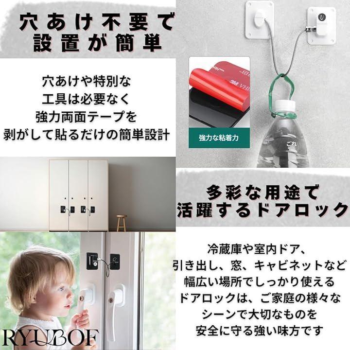 冷蔵庫や室内ドア、引き出し、窓、キャビネットなど様々な場所に設置できる多機能ドアロックです。