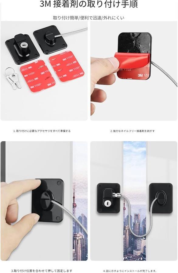 「お子様やペットのいたずら防止に最適」 ワイヤーでしっかり固定でき、鍵でロックと解除を行うため小さなお子様やペットのいたずらから貴重品やプライバシーを守ります。