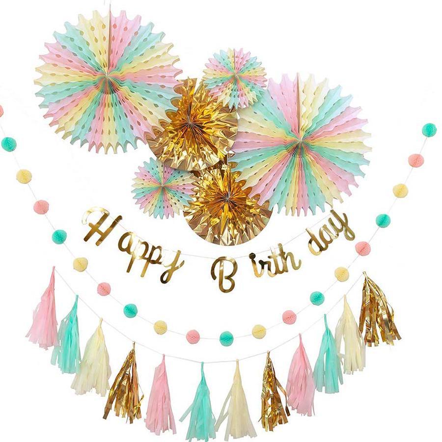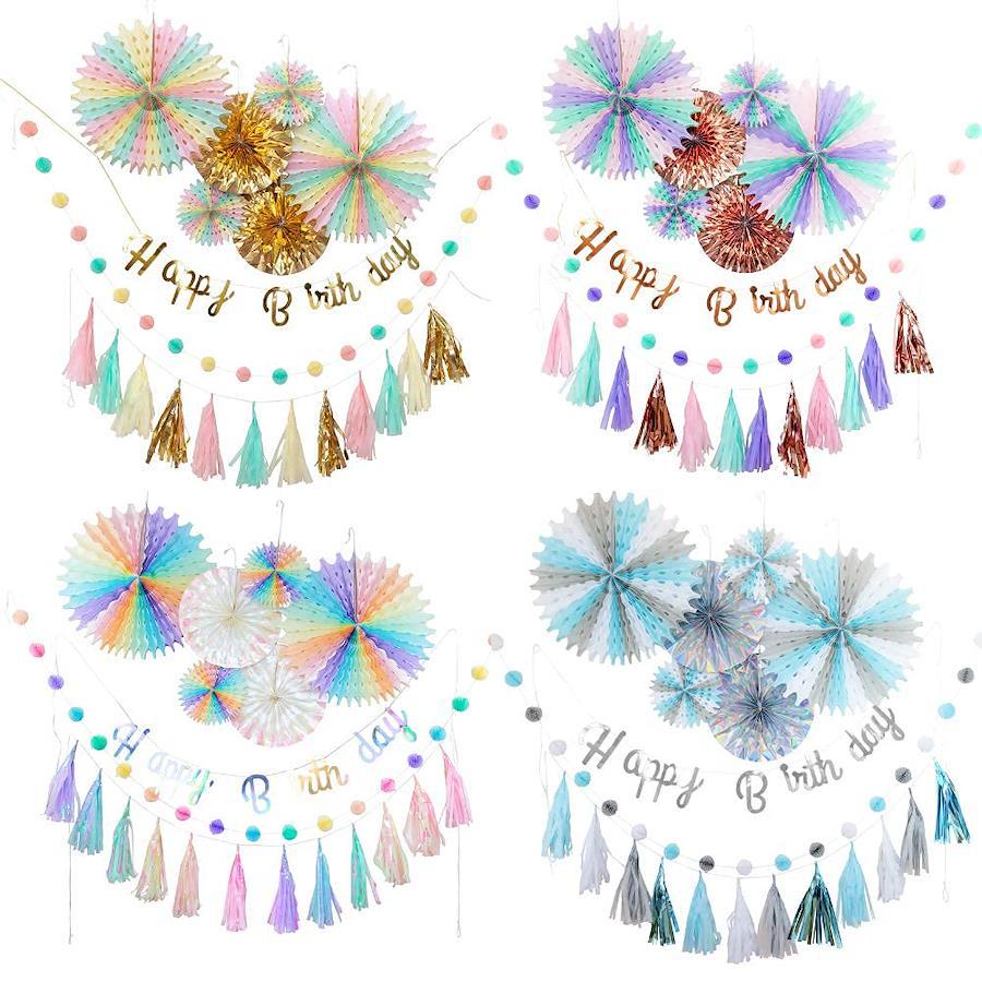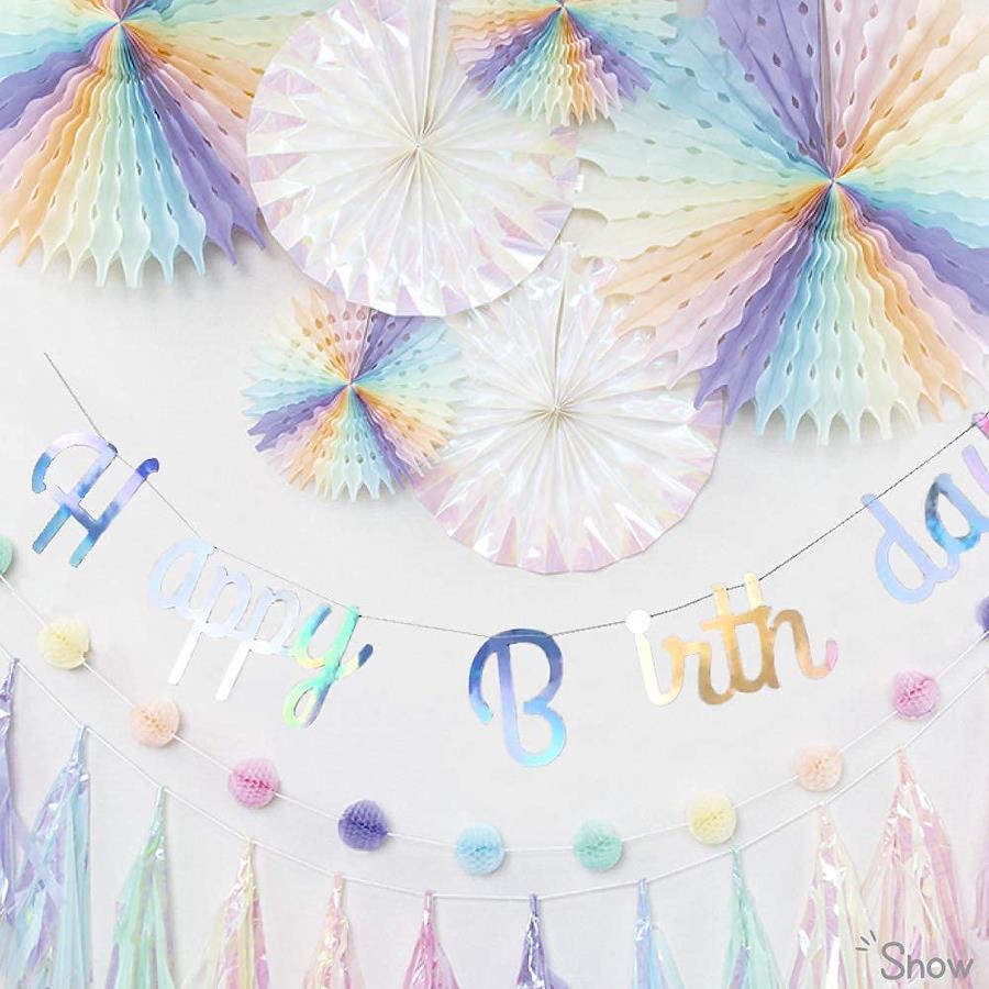 3営業日以内に発送≪新品未開封品≫★★ドリーミーガーランドセット★★どれもオシャレでかわいい4色のパステル調からお選びいただけます。メイン材質の紙の他にフィルムも入っているのでキラキラと目立ちます。年に一度の誕生日祝いを可愛く華やかに演出します。Happy Birthdayの文字はヒモを通して飾ったり、裏側に両面テープをつけたり壁に自由に 貼り付けて素敵に飾り付けできちゃいます★パーティー・結婚式・二次会などにも活躍できるカラーリング。 お子様の七五三や100日記念日、ハーフバースデーにもご利用いただくと可愛い写真が残せます☆その他、コンフェッティバルーンなどを一緒に飾りつけをすると一層華やかになります☆