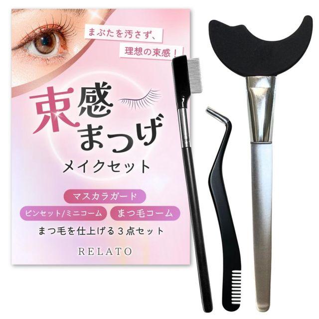 カラー:ブラック◆商品名:[RELATO]束感まつげオールインワンセットマスカラガードコーミングピンセットコーム付まつ毛コームシリコンステンレス取扱説明書付(ブラック)