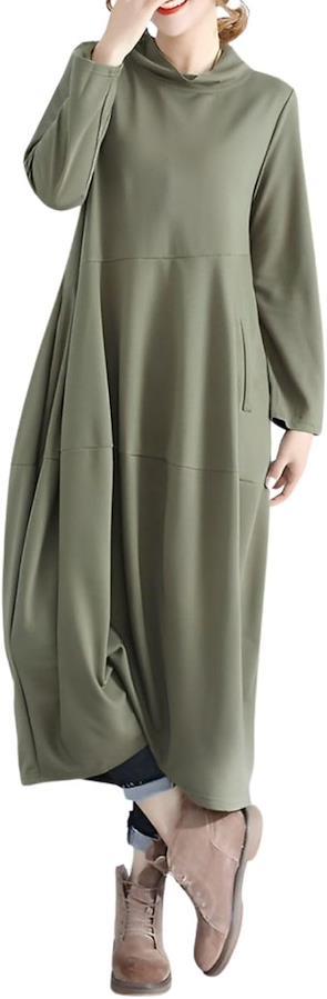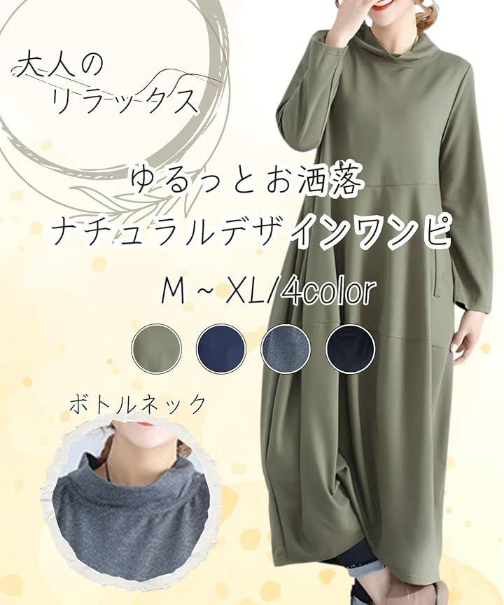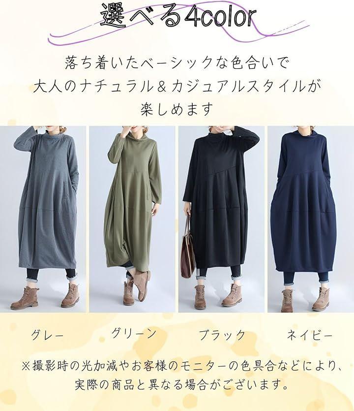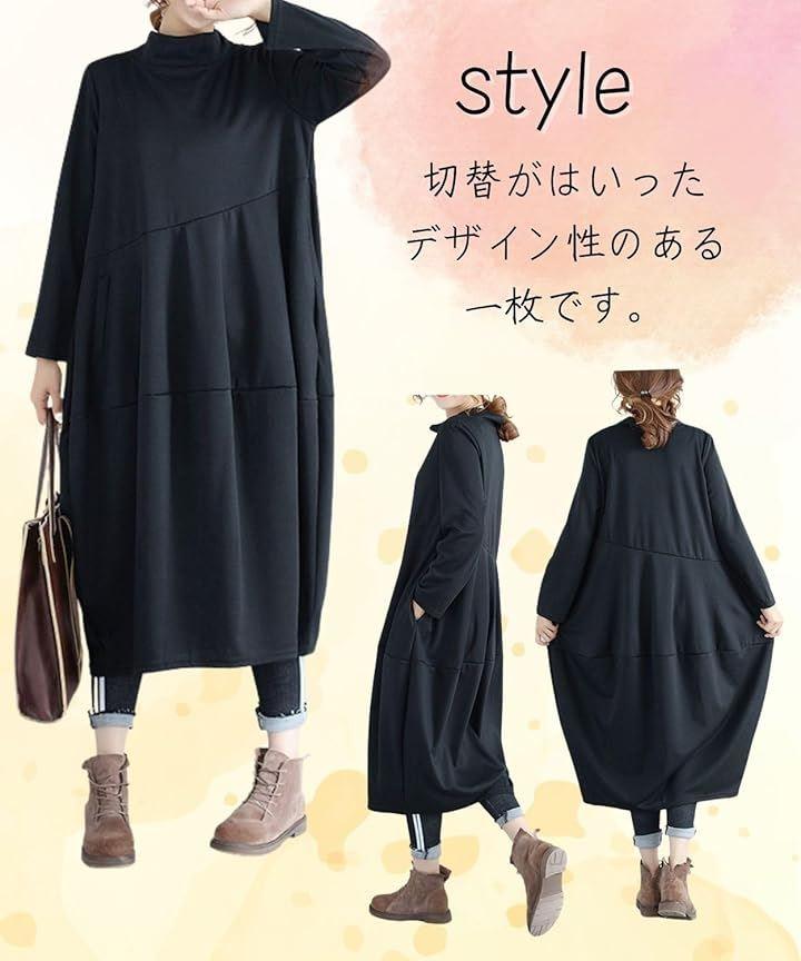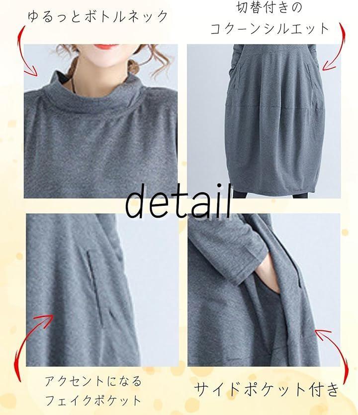 シンプルながらもさりげない切り替えラインとゆるやかなボトルネックがおしゃれなリラックス感があるワンピース ぽわんっとしたコクーンシルエットで気になる体型も可愛くカバーしながら 旬のゆるい着こなしを楽しめます。