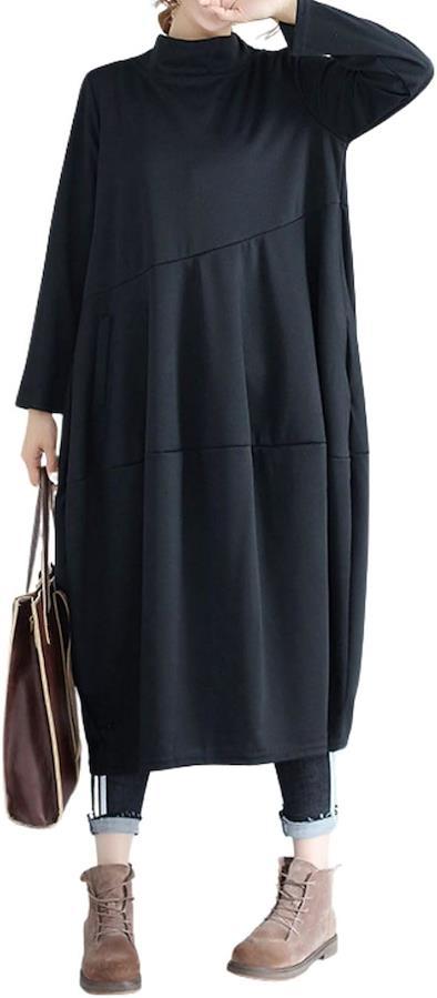 シンプルながらもさりげない切り替えラインとゆるやかなボトルネックがおしゃれなリラックス感があるワンピース ぽわんっとしたコクーンシルエットで気になる体型も可愛くカバーしながら 旬のゆるい着こなしを楽しめます。