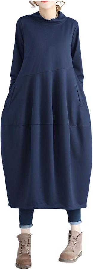 シンプルながらもさりげない切り替えラインとゆるやかなボトルネックがおしゃれなリラックス感があるワンピース ぽわんっとしたコクーンシルエットで気になる体型も可愛くカバーしながら 旬のゆるい着こなしを楽しめます。