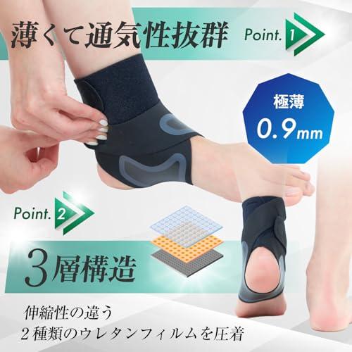 ?【抜群のフィット感】伸縮性に優れた素材が足首にしっかりフィット。動きを妨げず、安心のサポート感を実現します。 ?【動きをサポートする設計】テーピング理論を参考にした構造で、足首の動きを安定させ、日常やスポーツ時も快適なサポート感。 ?【違和感のない着用感】わずか0.9mmの薄型設計で、靴の中でもゴワつかず快適に着用できます。 ?【初心者でも簡単装着】シンプル構造で着脱がしやすく、忙しい朝や外出前でもサッと着けられます。 ?【軽量設計で快適】軽やかな素材を使用し、長時間の着用でもストレスを感じにくい設計。日常からスポーツまで活躍します。 ?【徹底した品質管理】RELAXEE足首サポーターはお客様に安心して商品をご使用頂く為、徹底した品質管理の下で製造・検品させて頂いております。 ?【安心の日本ブランド】購入後のサポートも日本人が丁寧に対応致します。サイズ交換も承っておりますので、お気軽にご相談下さい。