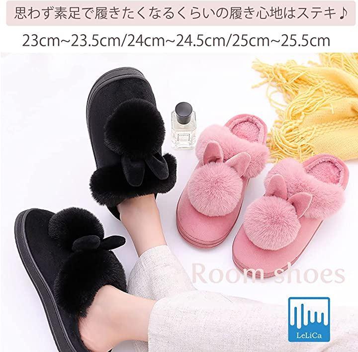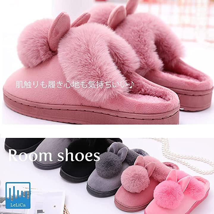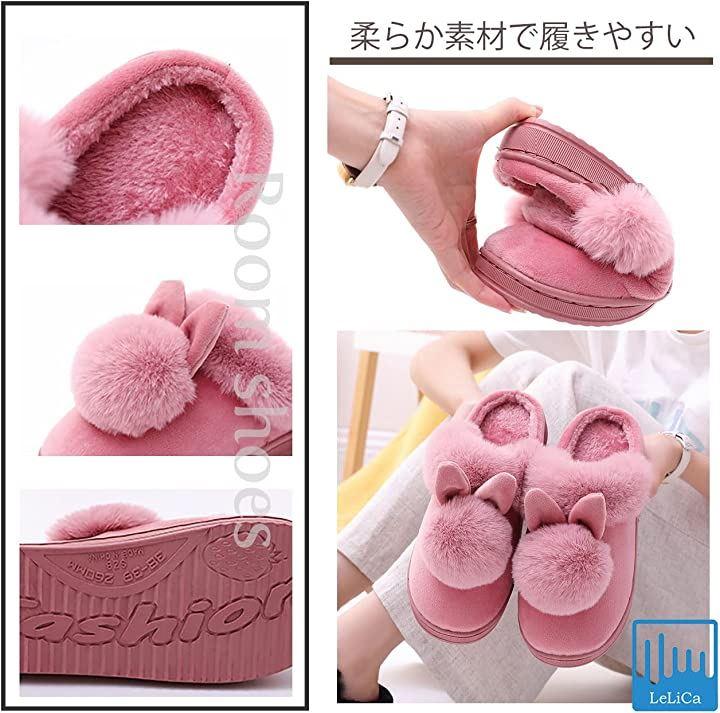 Relica Fluffy Warm Room Shoes Boa Fur Lightweight Thermal Slippers Indoor Warm Cold Protection Thick Sole Shoes Women's 24.0-24.5cm
