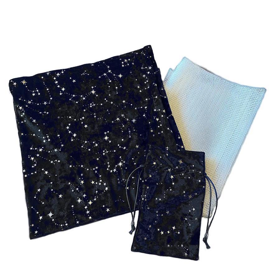 【内容】タロットクロス1枚、タロットポーチ1枚、滑り止めシート×1【サイズ】クロス:約65×約65(単位cm)ポーチ:約12×約18 (単位cm)【素材】ベルベット 【カラー】 高級感あふれる のベルベット素材を使用し、クロス&ポーチに滑り止めシートがついており、カードシャッフルがスムーズに行うことができます。 ラバーであしらった星がアクセントになり高級感がある作りになっております。他と違ったタロットクロスをお探しの方におすすめです。 タロットカード、オラクルカード、ペンジュラム、ダウジング、ルーン占い、などの占い全般に重宝するクロスです。 初心者の方からプロの占い師の方々までご使用いただけるおしゃれなタロットクロスになっております。
