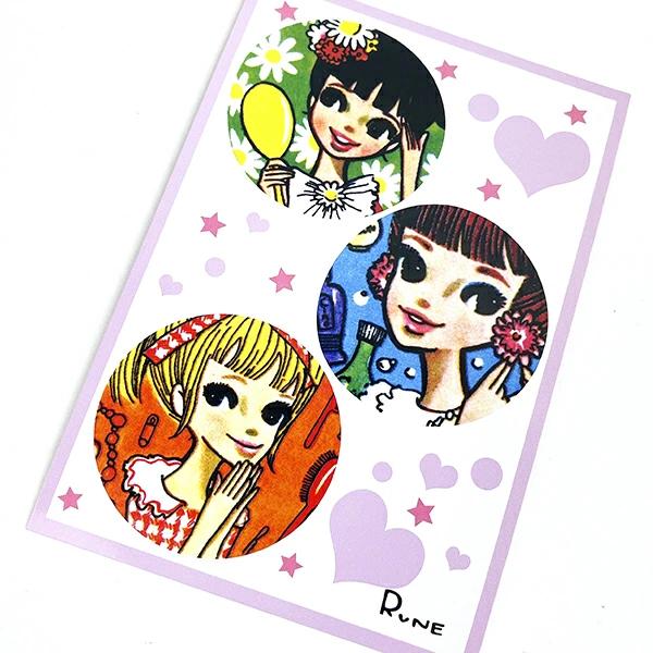 内藤ルネのKawaiiが詰まったポストカードです。マルチクリエイターとして活躍した内藤ルネはイラスト、ファンシーグッズ、ファッション、キッチン&インテリアなど、幅広い分野で「はじめて」にチャレンジし続け、ガールズポップカルチャーという「普通の女の子文化」を確立したことでも知られています。内藤ルネのKawaiiが詰まったポストカードを是非コレクションしてみてください☆彡