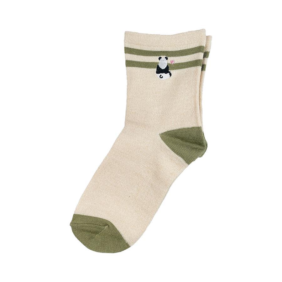 フィンランド語で【くつろぎ】の意味をもつ「Rentoutoa」。色々なデザインを集め目にも楽しめながら、履いても心がくつろげるをコンセプトにしたシリーズです。後ろ向きのパンダを刺繍をしています。