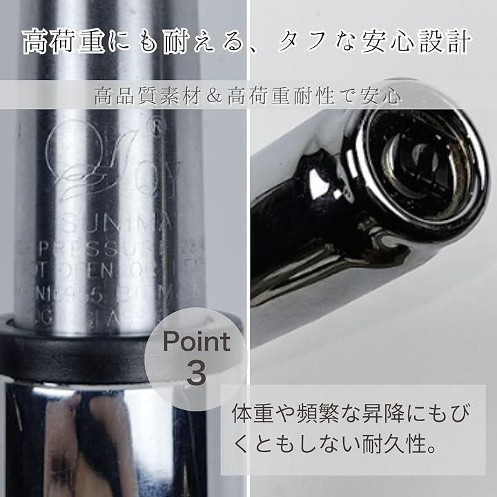 「高品質素材&高荷重耐性で安心」強化ステンレス+高品質ABS素材の組み合わせで、耐久性に優れ、200 kg以上の荷重にも耐える設計。