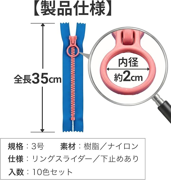 「様々な生地に合わせやすい35cm・10色セット」 長さ35cmのファスナーを、彩り豊かな10色セットにしました。