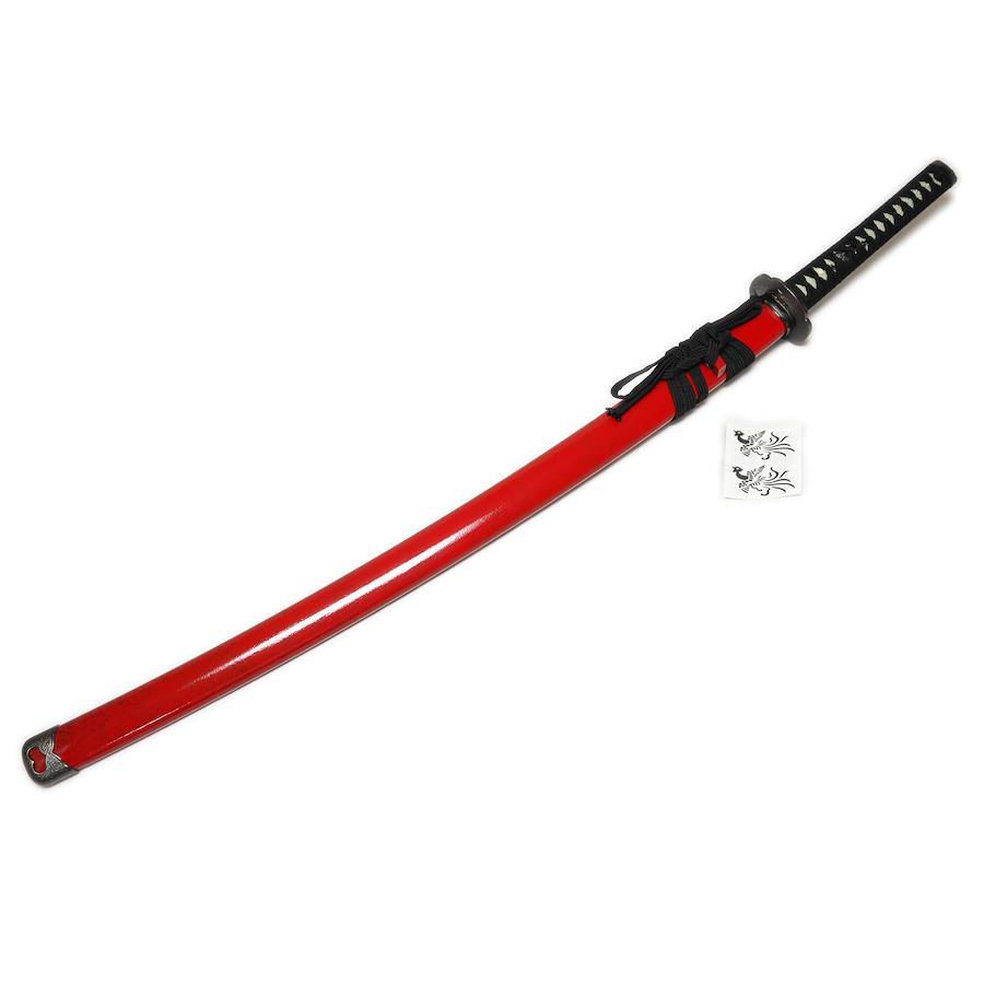 国産模造刀です。 岐阜県関市のメーカー製造。 一本一本丁寧に仕上げられ、各部の細部に至るまで美しい仕上げ、重量感など完成度の高い一品です。 刀身材質には特殊亜鉛合金を用いた本格仕様です。 インテリアやコスプレのアイテムとしても人気です。 是非、お買い求めいただき、手にとってその質感をお楽しみ下さい。 ■岐阜県関市■ 古より刃物の町として栄えた美濃国は”関市”刃物の歴史の中でも日本刀の歴史は古く700年を超えると言われております。 今もなお伝統の技を伝える刀匠達が、昔ながらの製法で製造しています。 サイズ (約)全長105cm 刃渡70.5cm 柄長25cm ■重量 (約)総重量1,210g 鞘払い950g 材質 刀身:亜鉛合金 兼定写し 鞘:朴の木(印伝風朱塗り鞘(蒔絵シール付)) 柄:プラ製(白鮫) 金具:合金 下緒:人絹 黒糸 柄糸:人絹 黒糸 縁・頭・目貫:龍の図 土方鍔 土方鐺金具 生産国:日本(岐阜県関市)