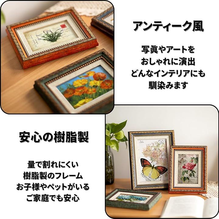 「アンティーク風デザイン」このおしゃれな写真立ては、レトロ調や木目調のデザインで、あなたの大切な写真やアート作品をより魅力的に演出します。