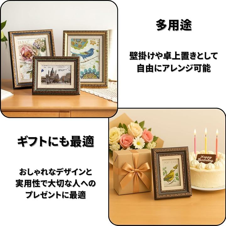 「アンティーク風デザイン」このおしゃれな写真立ては、レトロ調や木目調のデザインで、あなたの大切な写真やアート作品をより魅力的に演出します。