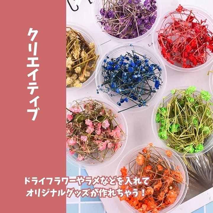 「クリエイティブ」ドライフラワーやラメなどの装飾材料を加えることで、オリジナリティあふれるアクセサリーが簡単に作れます。