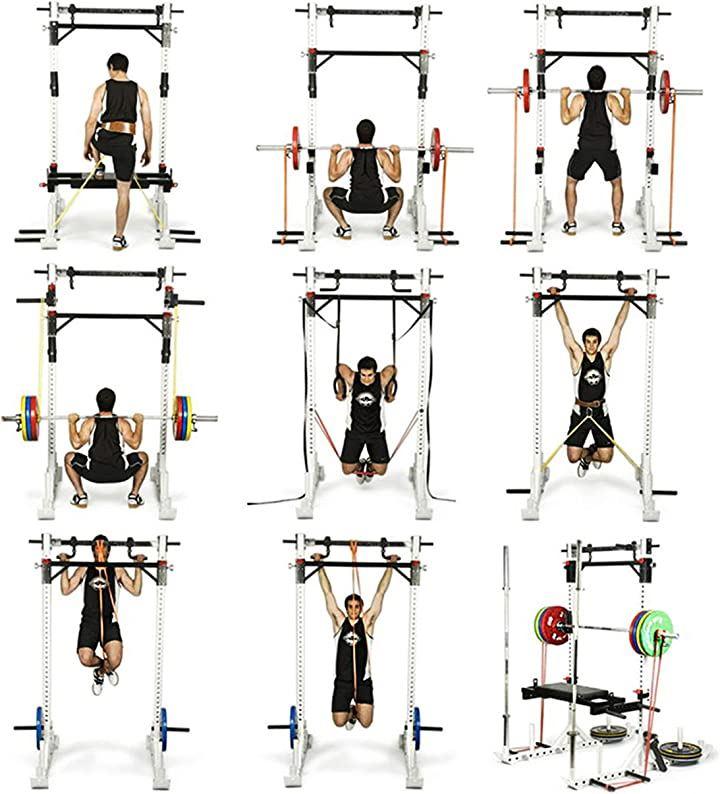 他のフィットネス機器との組み合わせ:パワーリフティングラックの腹部ホイールなどの他のフィットネス用具と一緒にトレーニングレジスタンスバンドを使用して、懸垂補助やより難しいレジスタンストレーニングなどを行うこともできます。