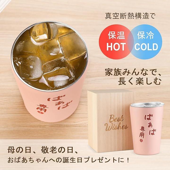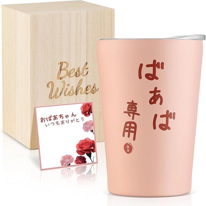 Respect for the Aged Day gift from grandchild, stainless steel tumbler, birthday gift for grandmother, popular, keeps warm or cold, easy to hold, airtight lid, paulownia wood box, message card, gift box, recovery gift, coffee mug, 350ml