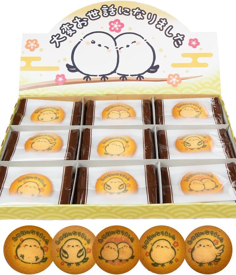 退職・異動・転勤・引っ越しのご挨拶にぴったりなクッキーギフトです。クッキーには「お世話になりました」のメッセージと、可愛らしいシマエナガのイラストがプリントされており、感謝の気持ちをしっかりと伝えられます。プリントデザインは全5種類。愛らしいシマエナガが異なる表情で描かれており、贈る方も受け取る方も楽しめる仕様になっています。 クッキーは1枚ずつ個包装されているため、職場の方々へのばらまき用にも便利です。27枚入りなので、大人数の職場でも配りやすく、お礼のギフトとして最適。サクサクとした食感のバタークッキーは、甘さ控えめで食べやすく、幅広い年代の方に喜ばれる味わいです。 パッケージはディスプレイボックス仕様になっており、そのまま置くだけで退職や異動の挨拶ギフトとして活用できます。賞味期限は製造日より180日間あり、常温で直射日光や高温多湿を避けて保存してください。 お世話になった方々へ、感謝の気持ちを込めた特別なギフトとしてぜひご利用ください。