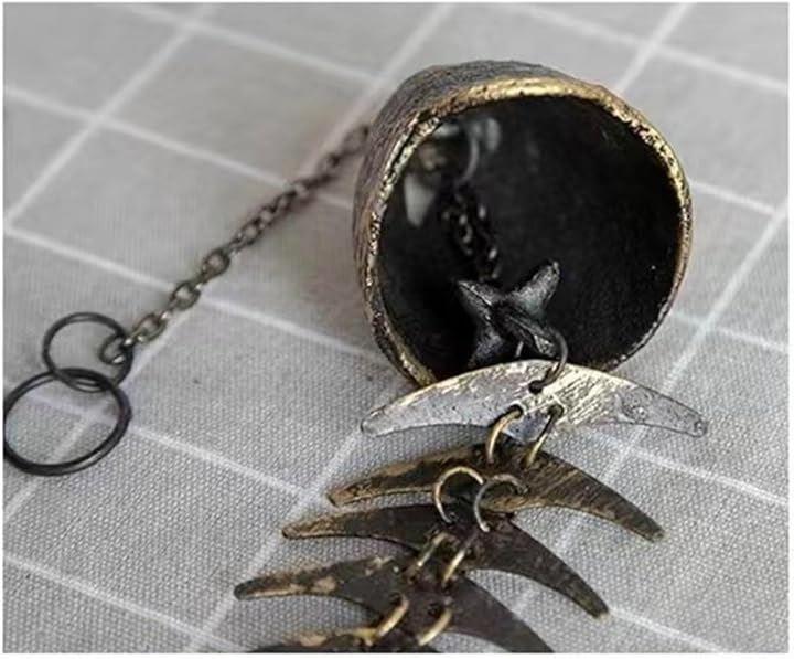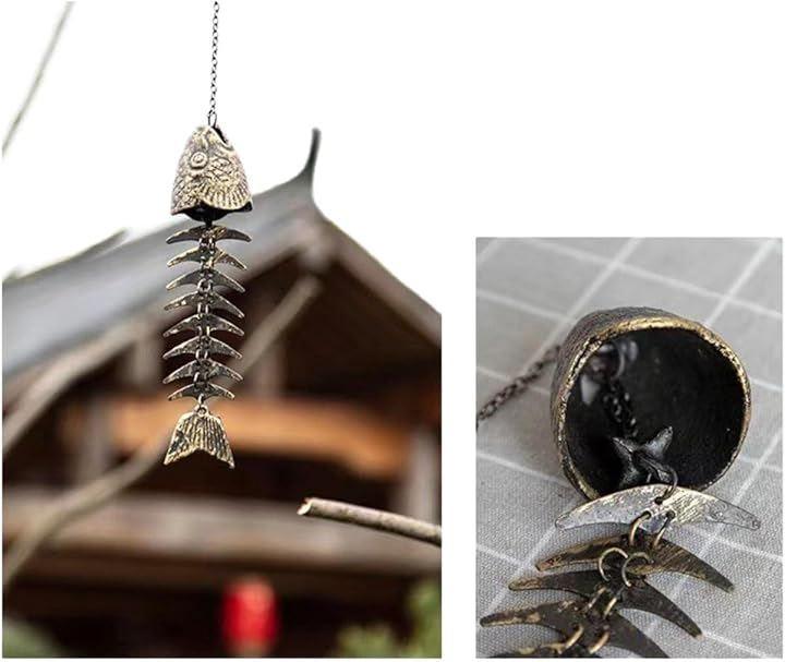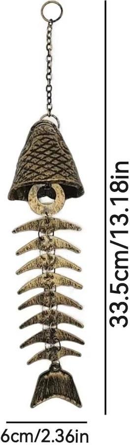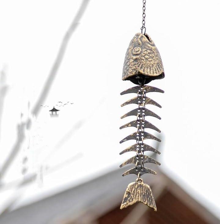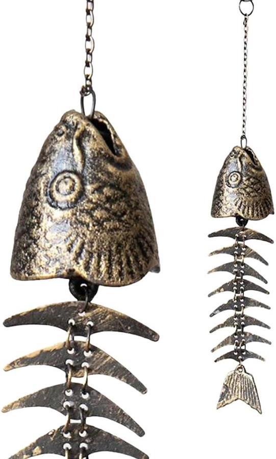 ユニークな魚の骨デザインが目を引く、レトロな鉄製風鈴です。