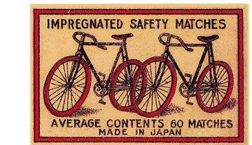 ナカムラマッチが古燐票(明治・大正の頃のマッチラベル)を缶マッチラベルで再現!今回のレトロラベルは、自転車 -6種類をご用意いたしました。「スチール缶マッチ」は、防湿効果を保持できるよう缶ふたの内側に マッチを擦って火をつける側薬を張り、マッチの軸向きは火のつく頭が下になります。