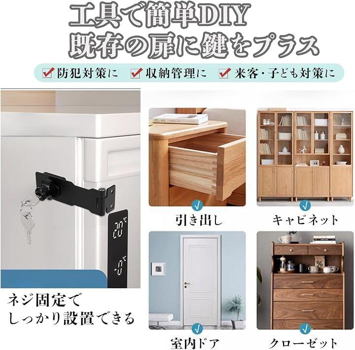 穴あけを伴う簡単なDIYで設置でき、既存の扉に施錠機能を追加できます。