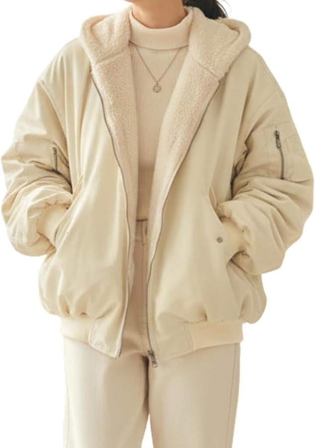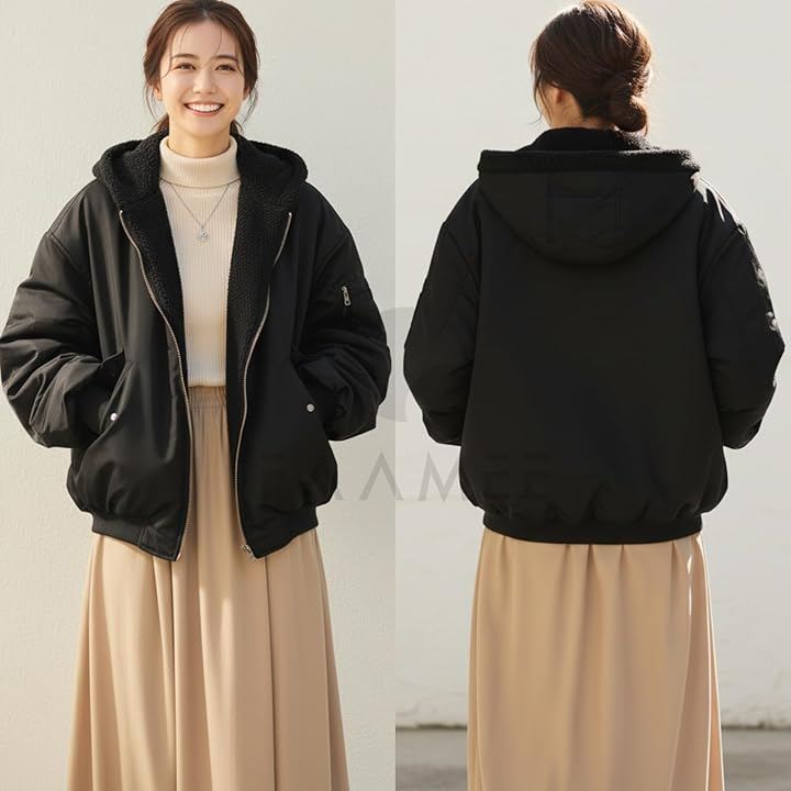 ナイロン面はきれいめでクリーンな印象に、ボア面は柔らかく女性らしい雰囲気に。