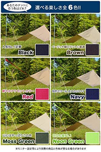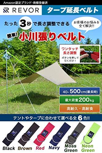 たった3秒で長さ調整できる「簡単!小川張りベルト!!」ボタンを押して引くだけの簡単操作!従来品のお客様のお悩み「長さ調整が難しい」「強度が弱い」「設置中に外れる」「好みの色がない」を全て解決!!あなたのテントにあう色はどれ?テントやタープに合わせて選べます!選べる楽しさ全6色!!「ブラック…人気No.1定番」「ブラウン…ベージュや緑のテントに最適」「レッド…鮮やかアクセントカラー」「ネイビー…知的でクール大人カッコイイ」「モスグリーン…山にはやっぱりこの色」「ネオングリーン…目立ち度No.1」【改良①】ワンタッチで簡単に長さ調整できるように改良しました。従来品のバックル式では指先でベルトを手繰り寄せて調整するため時間がかかり、ベルトを端で折り返す構造のため調整可能幅が250~500cmと狭い課題がありました。従来品のハトメ式では、ハトメ間隔でしか長さ調整できないため、ポール位置を自由に決められず、テントレイアウトの微調整ができない課題がありました。当製品は、指先でアジャスターのロックを解除して、ベルトを引くだけの簡単操作。自在金具で40~500cmまで無段階で調節が可能。ソロから大型テントまで自由にレイアウトできます。【改良②】ポール固定部をポールにぴったりフィットするアイレットに変更しました。従来品のDカン式では設営中にポールから外れて何度もやり直す課題がありました。当製品では、ポールにジャストサイズの内径Φ9mmのアイレットを採用することで、設営中の脱落を回避し、設営がスムーズに進むようにしました。【改良③】ゴムコードを付属し、あまったベルトをすっきり収納できるようにしました。従来品は余ったベルトをそのまま垂らすと見た目が今ひとつで、風でからまることも。当製品では、余ったベルトを綺麗に簡単にまとめられるようにゴムコードを付属しました。後片付けする際のベルトの保管収納用としてもご利用頂けます。【サイズ】長さ40~500cm、幅3.0cm【重量】300g【最大荷重】200kg【素材】高強度ナイロン、ステンレス(SUS304)他【同梱品】本体、収納ゴムコード、説明書【1年間保証】製造・設計上の欠陥による損傷が発生した場合は、検証しご対応させて頂きます。経年劣化や使用による消耗、お客様要因の破損は保証対象外です。輸入品のため、縫製が甘い部分がございます。ご了承ください。