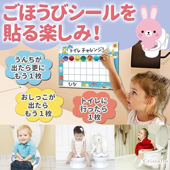 トイレトレーニングでは、(1)トイレに行くと1枚 (2)おしっこが出たら1枚 (3)うんちが出たら1枚 という感じでトイレだけで3枚もシールを貼ることができます。