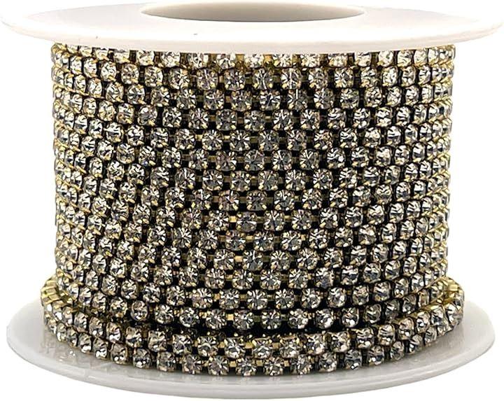 2.5mm「商品詳細」1ロール10m / ストーンサイズ:2.5mm / 1mにつき約340粒 / 材質:真鍮(チェーン)、ガラス(ストーン) / カラー:ゴールド