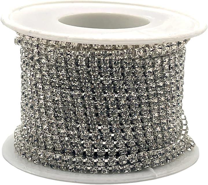2.5mm「商品詳細」1ロール10m / ストーンサイズ:2.5mm / 1mにつき約340粒 / 材質:真鍮(チェーン)、ガラス(ストーン) / カラー:シルバー