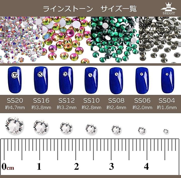 「内容量」:ラインストーン/1カラー・1サイズ(計1300粒以上)「カラー」 クリア / クリアAB / ジェットブラック / クリアグレー / ライトパープル / パープル / ライトグリーン / エメラルド / ライトブルー / サファイアブルー / シャンパン / ゴールドイエロー / スモークトパーズ / オーロラ