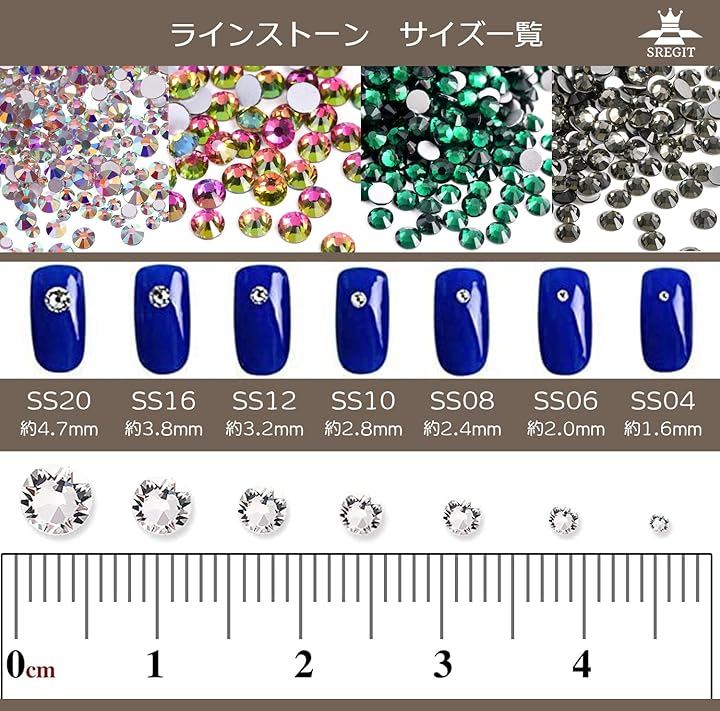 「内容量」:ラインストーン/1カラー・1サイズ(計1300粒以上)「カラー」 クリア / クリアAB / ジェットブラック / クリアグレー / ライトパープル / パープル / ライトグリーン / エメラルド / ライトブルー / サファイアブルー / シャンパン / ゴールドイエロー / スモークトパーズ / オーロラ