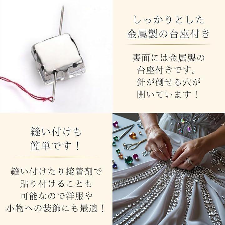 それぞれのストーンにはしっかりとした金属製の台座が付いており、縫いつけるだけで簡単に固定できるため、洋服や小物への装飾にも最適です。