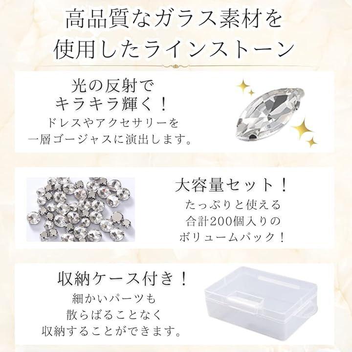 合計200個入りの大容量セットで、ジュエリーや衣装づくり、イベント装飾にもたっぷり使えます。