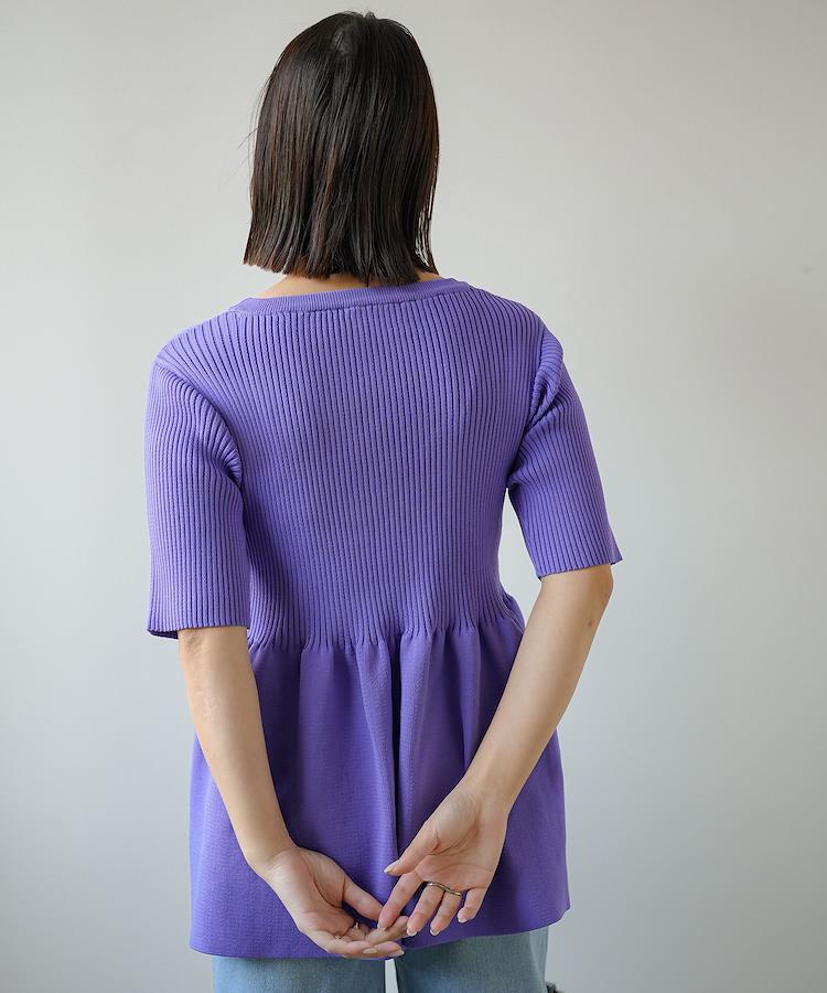 編み地変化でペプラム切り替えを表現したプルオーバーニット。
