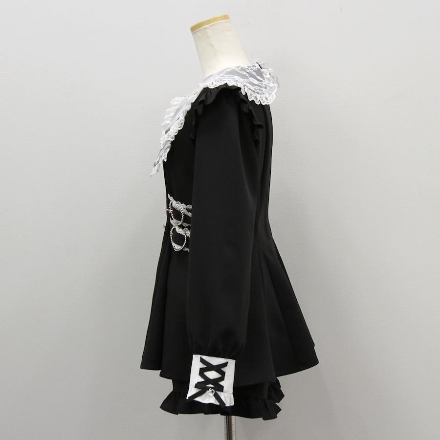 袖口カフスにはレースアップリボンがあり、デザインポイントたっぷりのセットアップです。