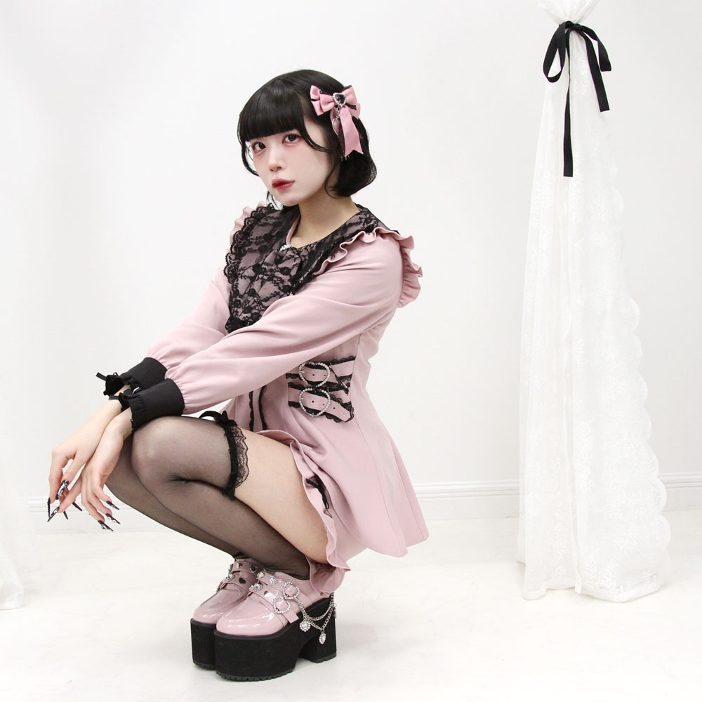 レース重ねがかわいいリボン襟デザインのセットアップです♪