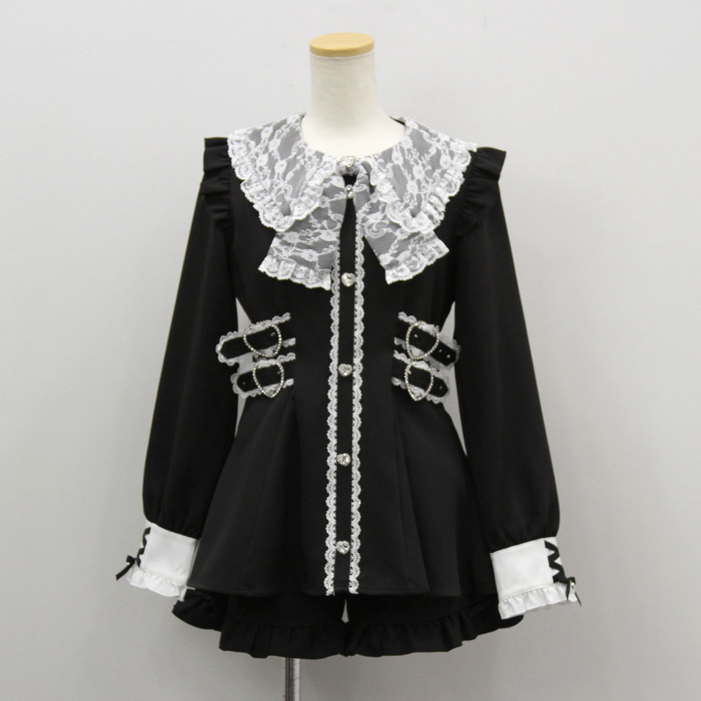 袖口カフスにはレースアップリボンがあり、デザインポイントたっぷりのセットアップです。