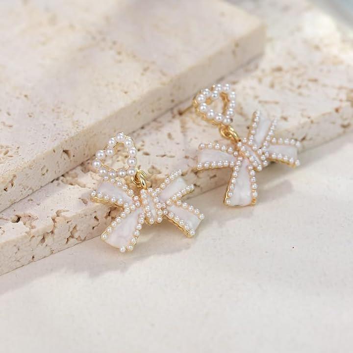 垂れ下がるシェルとパールビーズが耳元で優雅に揺れ、女性らしい華やかさを演出します。